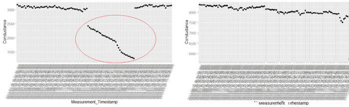 2. Identify any consolidating metric for the variable under consideration to separate out anomalous samples. In the example above we used standard deviation of conductance values to find anomalies.