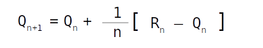 This is a simple update formulae where Qn+1 is the new estimate for the n+1 occurance of action a, Qn is the estimate till the nth try and Rn is the reward received for the nth try .