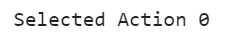 In the above section, in line 31 we check whether the probability we generated is greater than the epsilon value . if It it is greater, we exploit our knowledge about the value of the arms and select the arm which has so far provided the greatest reward ( line 33 ). If the value is less than the epsilon value, we resort to exploration wherein we randomly select an arm as shown in line 35. We can see that the action selected is the first action ( index 0) as we are still in the initial values.