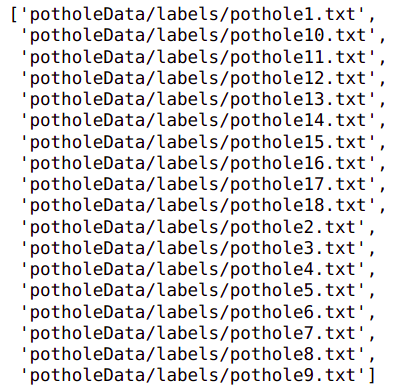 annotations = glob.glob('potholeData/labels' + '/*.txt')