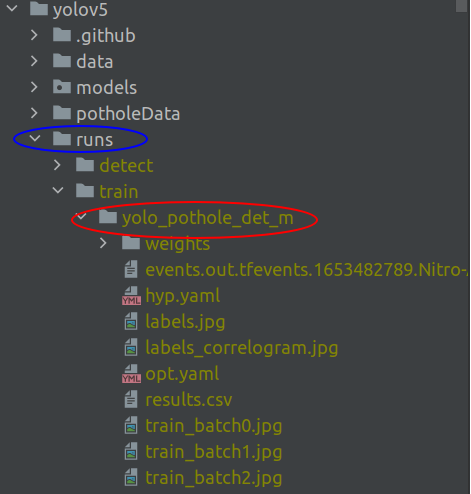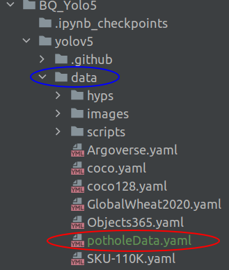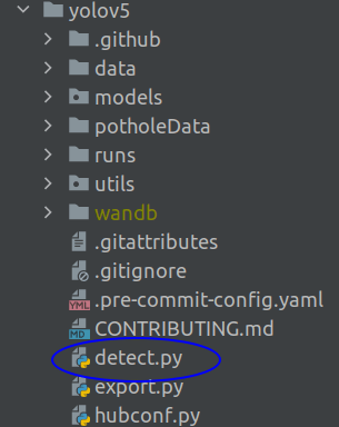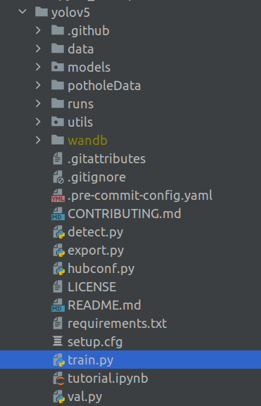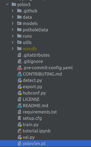 Please note that the folder ‘potholeData‘ will not be part of the default yolov5 folder. This folder will be created by us in a moment from now.