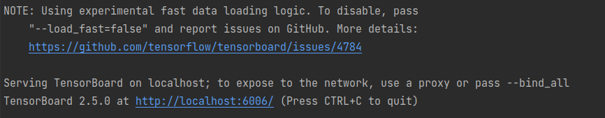 Once this command is executed, you will find the following output and will be able to visualize the training run on the browser in the following url http://localhost:6006/