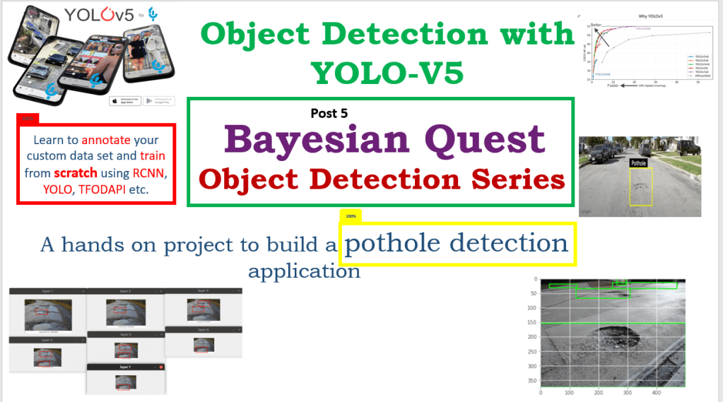 Having seen an advanced method like YOLOV5, we will now proceed to learn to use a great tool from Tensorflow called the Tensorflow Object Detection API ( TFODAPI ). Using this API we would be able to build different types of object detection models. We will cover pothole detection using TFODAPI in the next post . Watch this space for more.