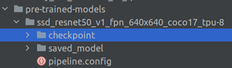pre-trained-models : This folder contains the pre-trained models which we use to initiate our training process. So every type of pretrained model we use will be in a separate subfolder as shown in the image below.