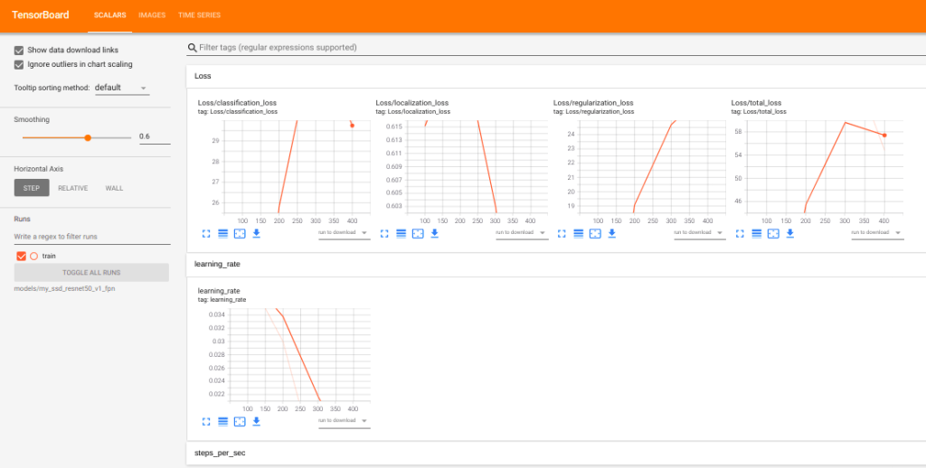 models : This folder will contain a subfolder for each training job we implement. For example, I have created the current training using a ssd_resnet50 model. So you will find a folder related to that as shown in the image below