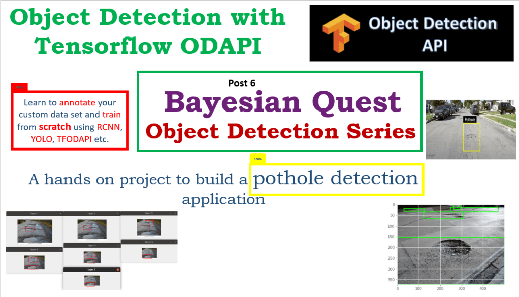 Over the past few posts of this series we explored many frameworks through which we created object detection models to detect potholes on road. All the frameworks which we explored till post 5 were about some specific type of model. However in this post we are going to do something different. In this post we will learn about a great utility to do object detection and its called Tensorflow Object Detection API ( TFODAPI ). This is a great API with which we would be able to train custom object detection models using different types of networks. In this post we will use TFODAPI to build our pothole detector. Let us dive in.